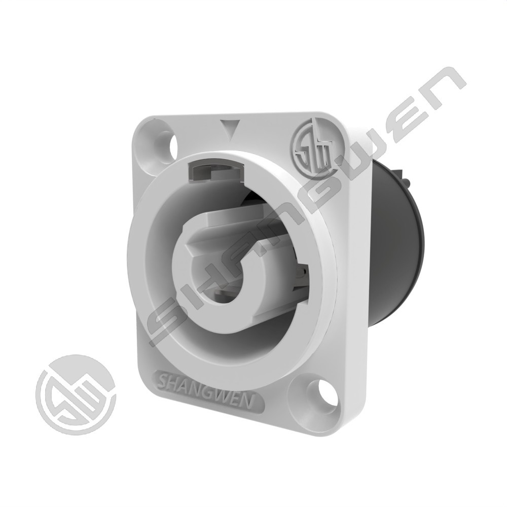 Powercon Chassis 3 ตัวนำ 20A 250V สำหรับใช้ภายในอาคาร Power-Out ขั้วต่อแบบ Flat Tab 3/16" สีขาว สำหรับตู้หน้าจอ LED